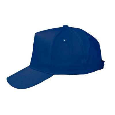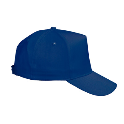 Structured, five-panel, mid-profile twill cap has an adjustable plastic tab back.