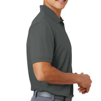 This polo delivers timeless style and performance with ultra-smooth double pique and Dri-FIT moisture management technology. Design features include a three-button placket, streamlined self-fabric collar and open hem sleeves. A contrast metallic silver heat transfer Swoosh design trademark is on the left sleeve. Made of 6-ounce, 100% polyester Dri-FIT fabric. Modern fit is slightly tailored through the chest, arms and waist.